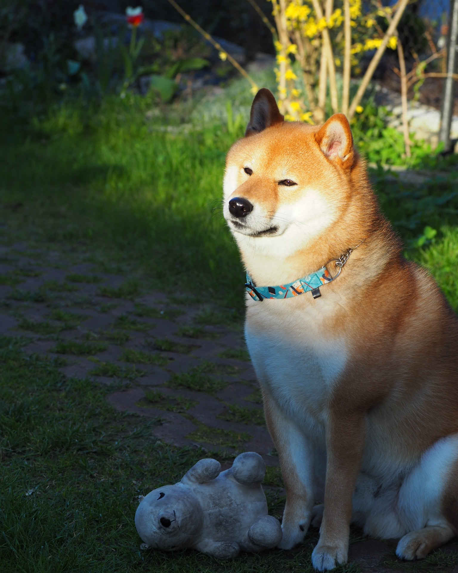 Piszę to, kiedy Toshiko ma już dwa lata. To, że jest tak pracowita i radosna to oczywiście zasługa jej wspaniałych genów. Ale to, jakim jest cudownym psim przyjacielem, to efekt zbudowanej relacji, szanowania jej komunikatów, wspólnej pracy, ale także nauki od starszych psich przyjaciół. Toshiko była małym czarnym diabełkiem (aniołkiem oczywiście). Nietrwało to długo, bo nawet już tego nie pamiętam, ale piszę to, żebyś czytając to, był świadomy, że na początku ze szczeniaczkiem może być trudno i ciężko, ale jeśli poznasz podstawy psiej komunikacji i będziesz pracować nad wspólną relacją, to ta mała shibka będzie kiedyś Twoim najlepszym przyjacielem. Ja mam aż troje <3.